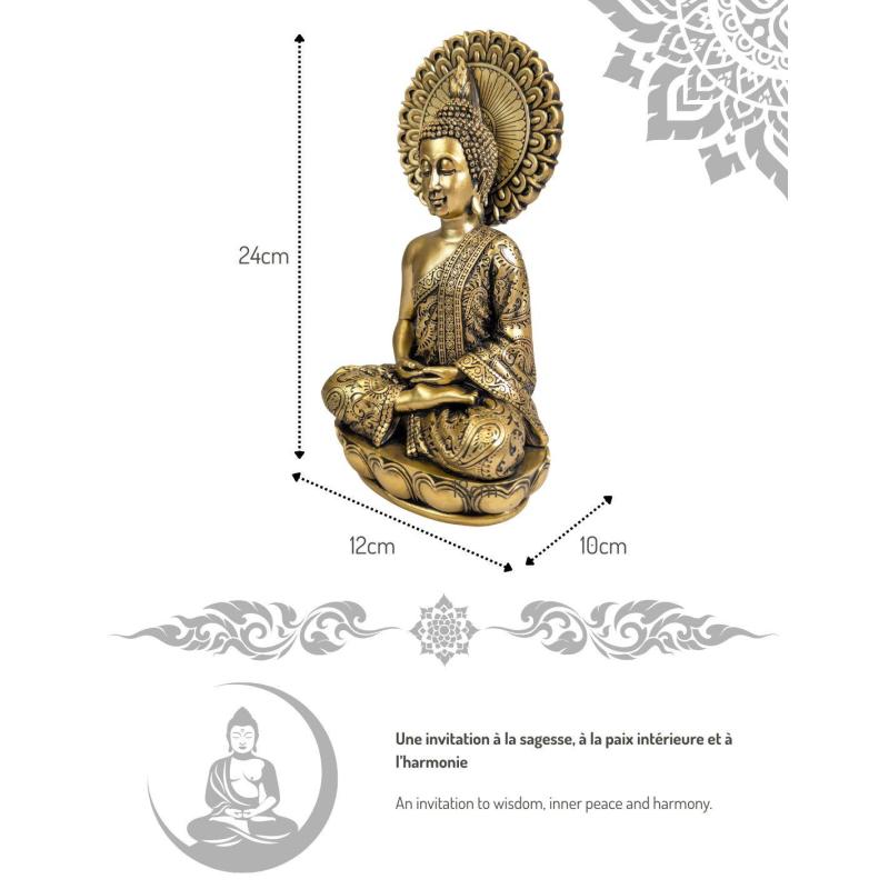 Statue Bouddha Zen Doré 24cm | Décoration Spirituelle