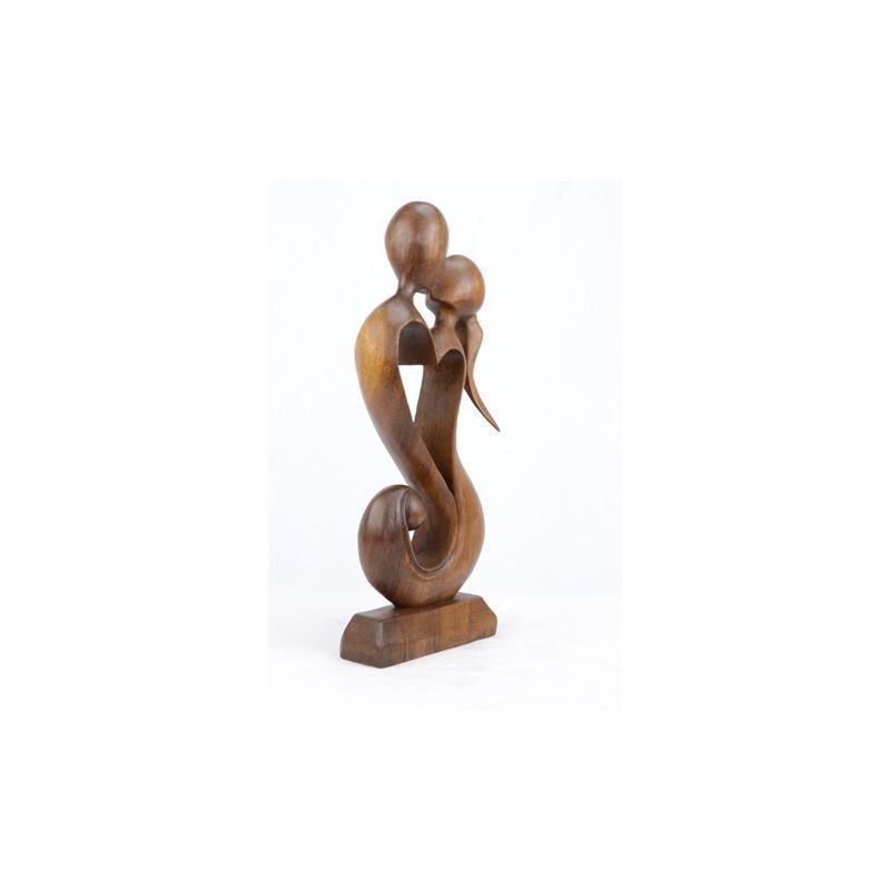 Statue Abstraite "Couple en Fusion" 30cm en bois | Cadeau Amoureux