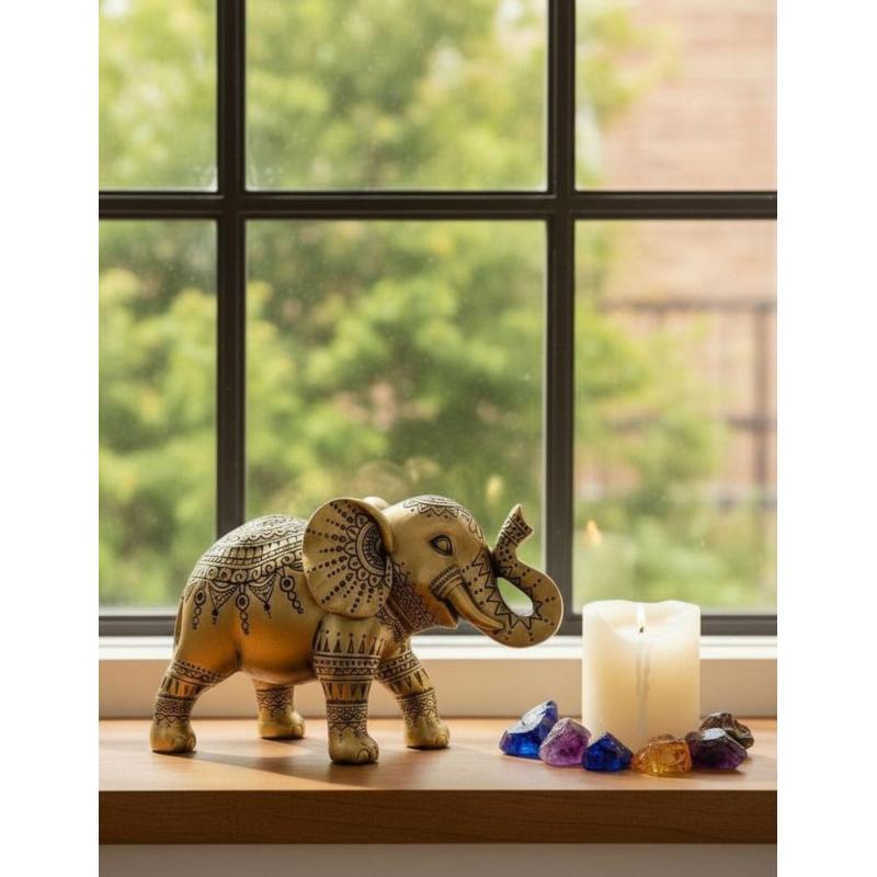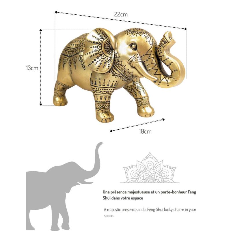 Statue Éléphant doré 22 cm | Porte-Bonheur Feng Shui