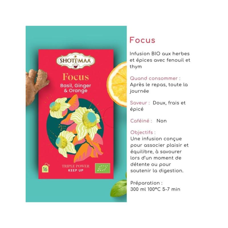 Infusion Bio "Focus" Basilic, Gingembre & Orange | Shoti Maa - Gamme Triple Pouvoir