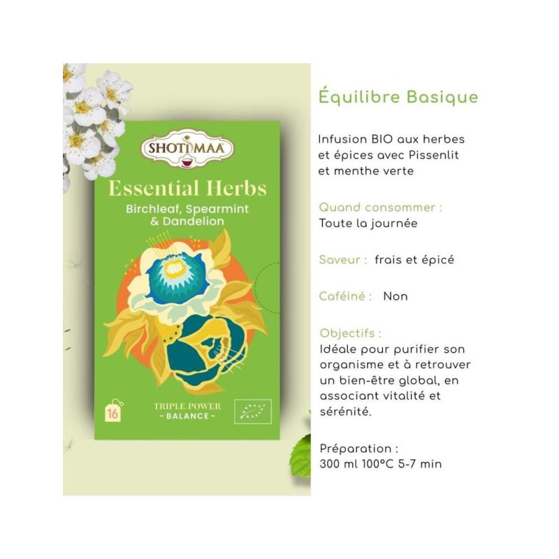 Infusion Bio "Équilibre Basique" Feuille de Boulot, Menthe Verte & Pissenlit | Shoti Maa - Gamme Triple Pouvoir