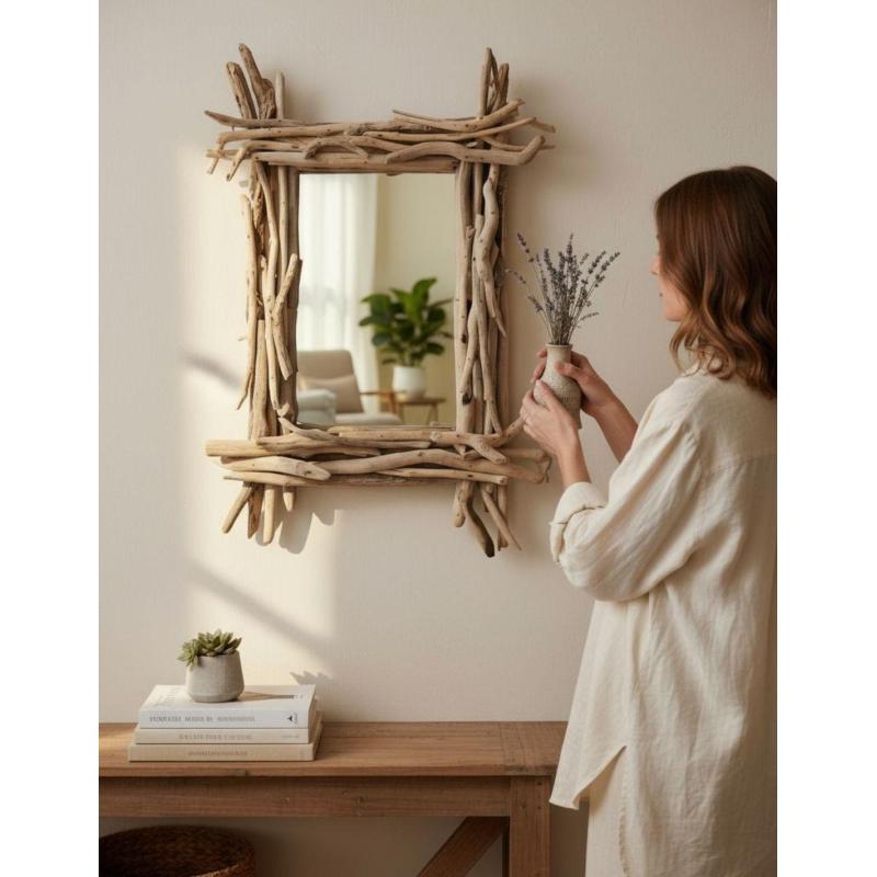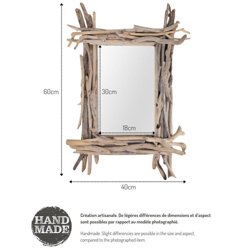 Miroir rectangulaire en bois flotté 60x40cm | Déco "Bord de Mer"