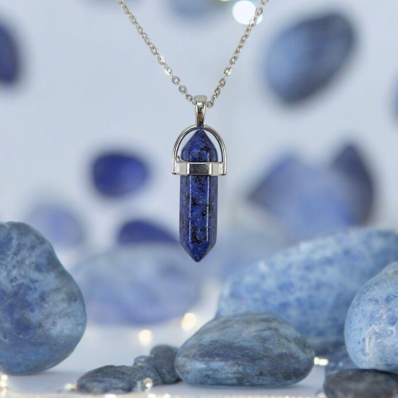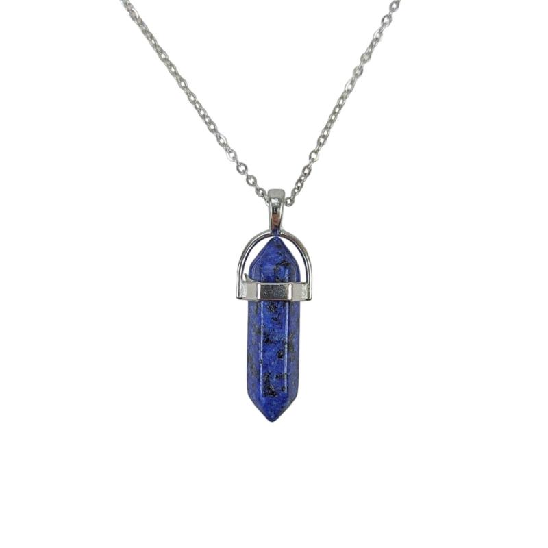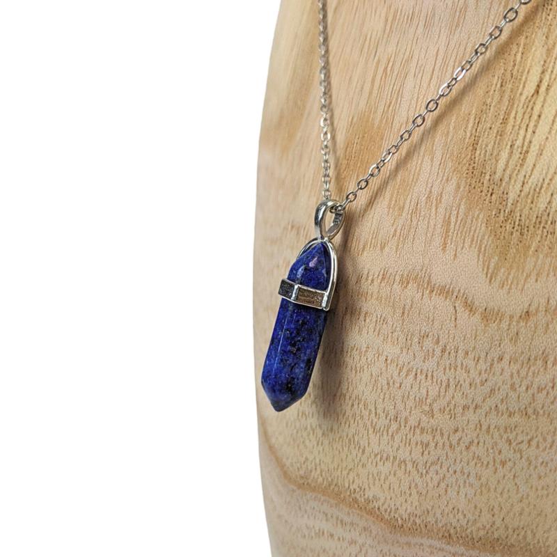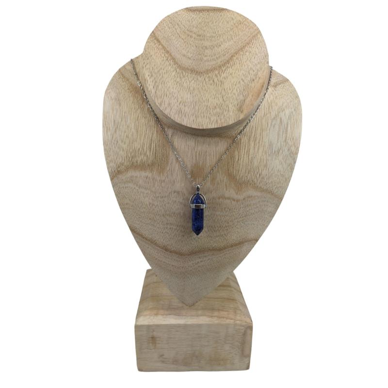 Collier acier + pendentif pointe Lapis Lazuli