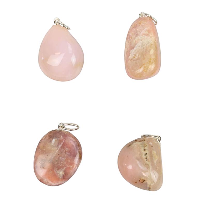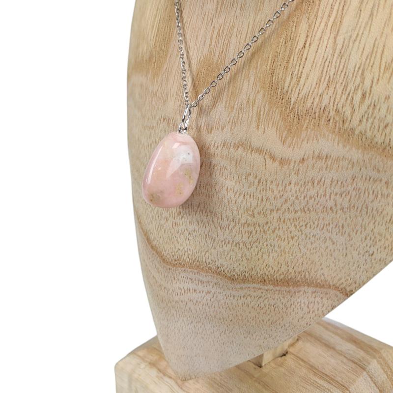 Collier Opale rose des Andes AAA - pendentif pierre roulée + chaîne