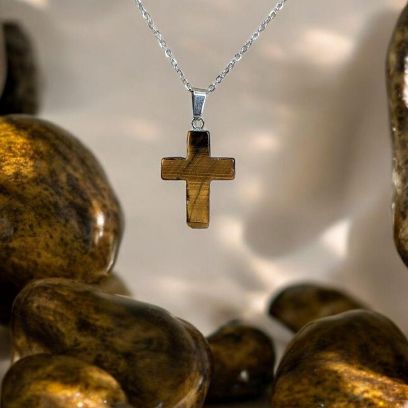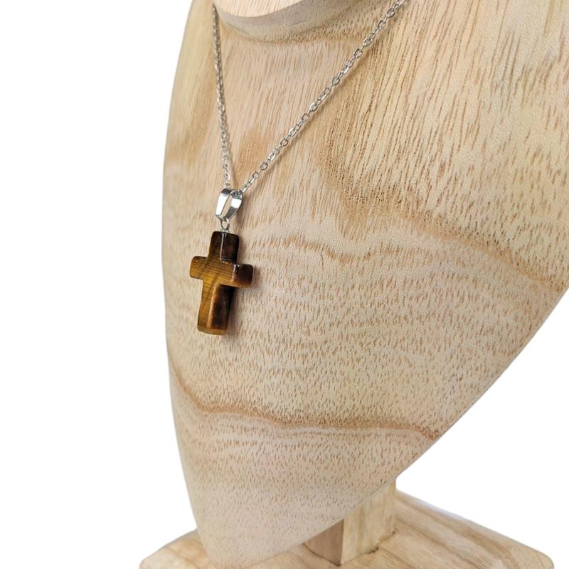 Collier "Croix" en Oeil de Tigre