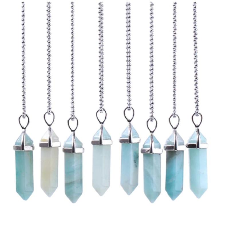 Collier argenté + pendentif pointe hexagonale Amazonite
