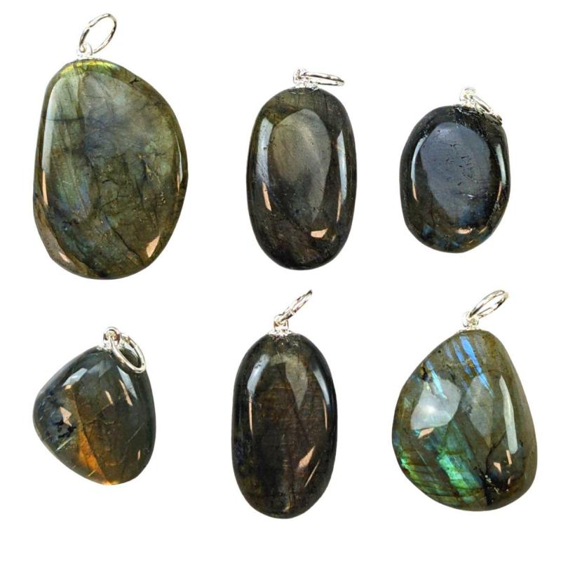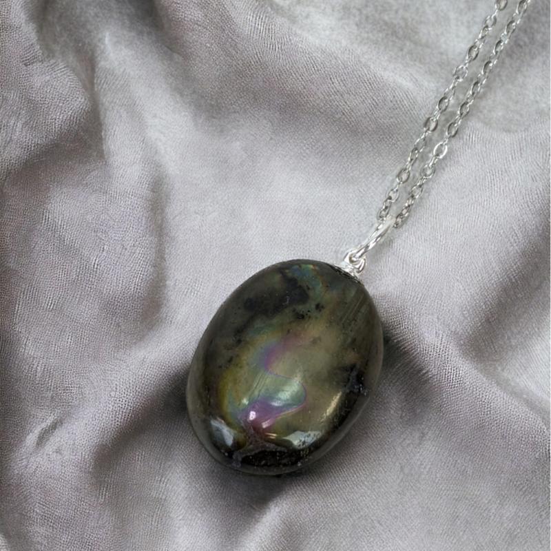 Collier Labradorite de Madagascar AAA - pendentif pierre roulée + chaîne