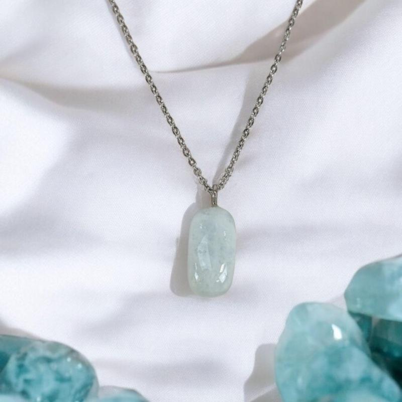 Collier Aigue-Marine AB | Pendentif pierre roulée + chaîne acier