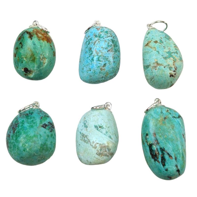 Collier Chrysocolle turquoise A | Pendentif pierre roulée + chaîne argentée