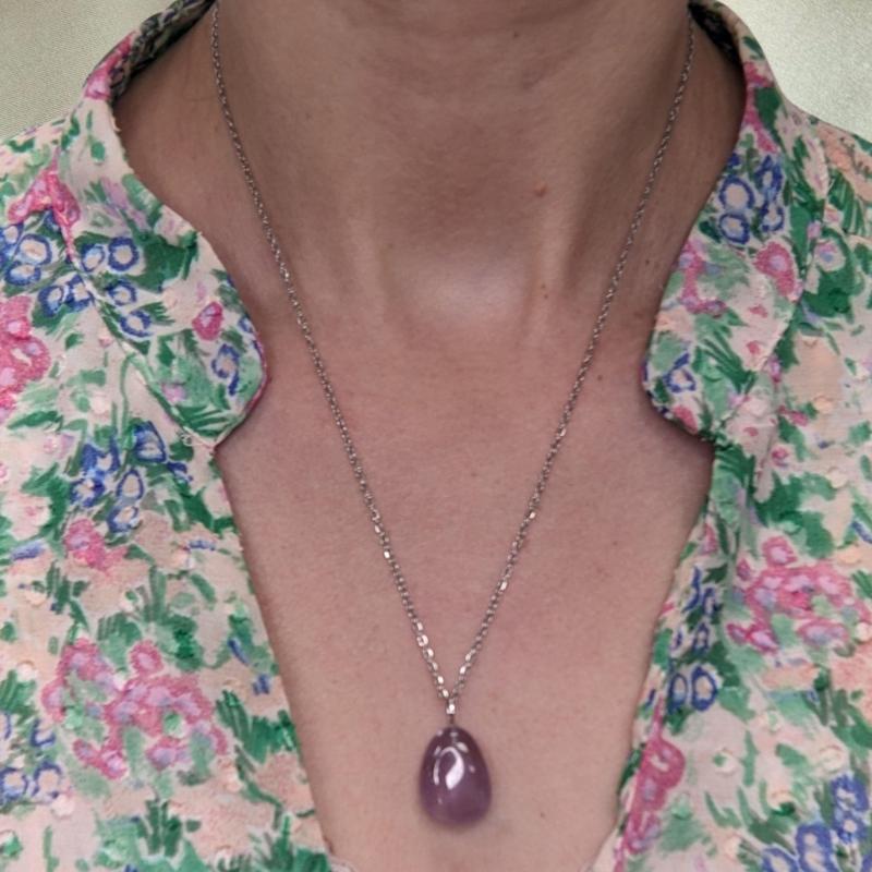 Collier Améthyste | Pendentif pierre roulée + chaîne argentée