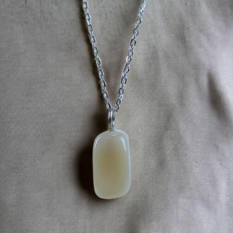 Collier Pierre de lune grise AAA | Pendentif pierre roulée + chaîne argentée