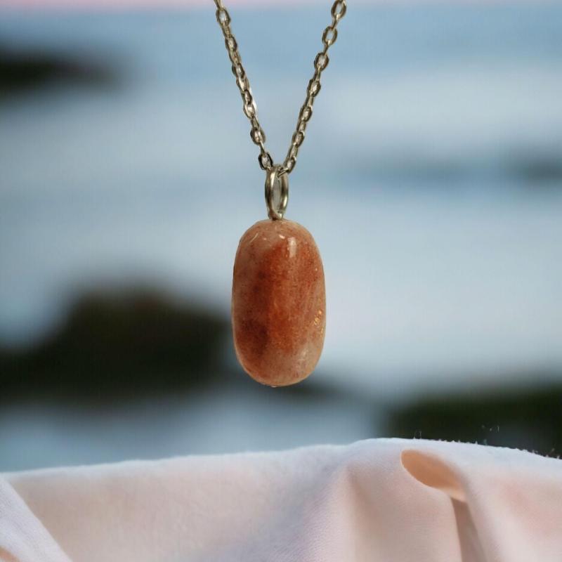 Collier Pierre de Soleil AAA | Pendentif pierre roulée + chaîne argentée