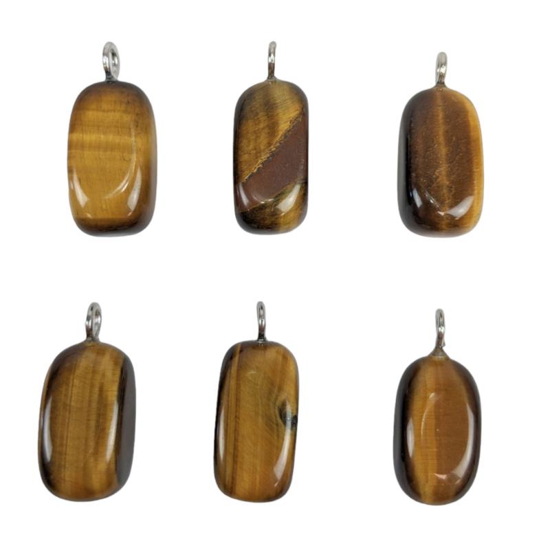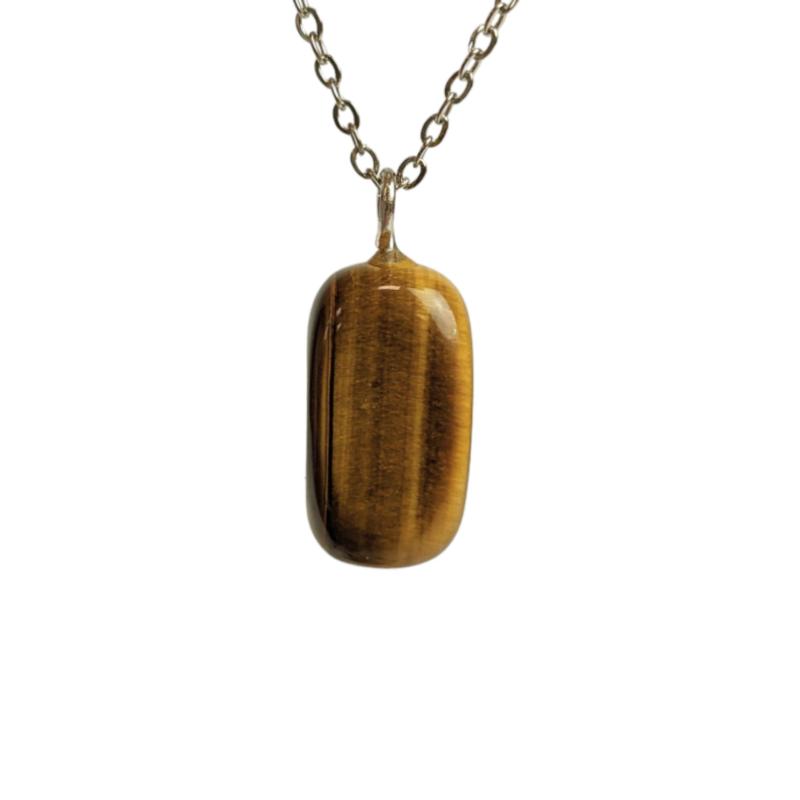 Collier œil du tigre AAA | Pendentif pierre roulée + chaîne acier