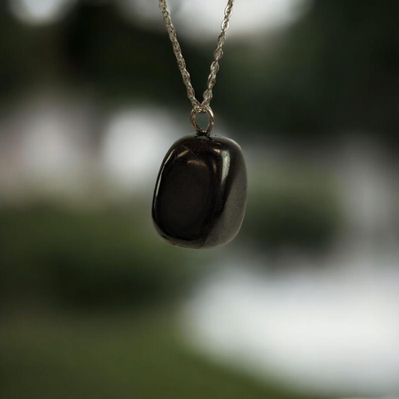 Collier Shungite | Pendentif pierre roulée + chaîne acier