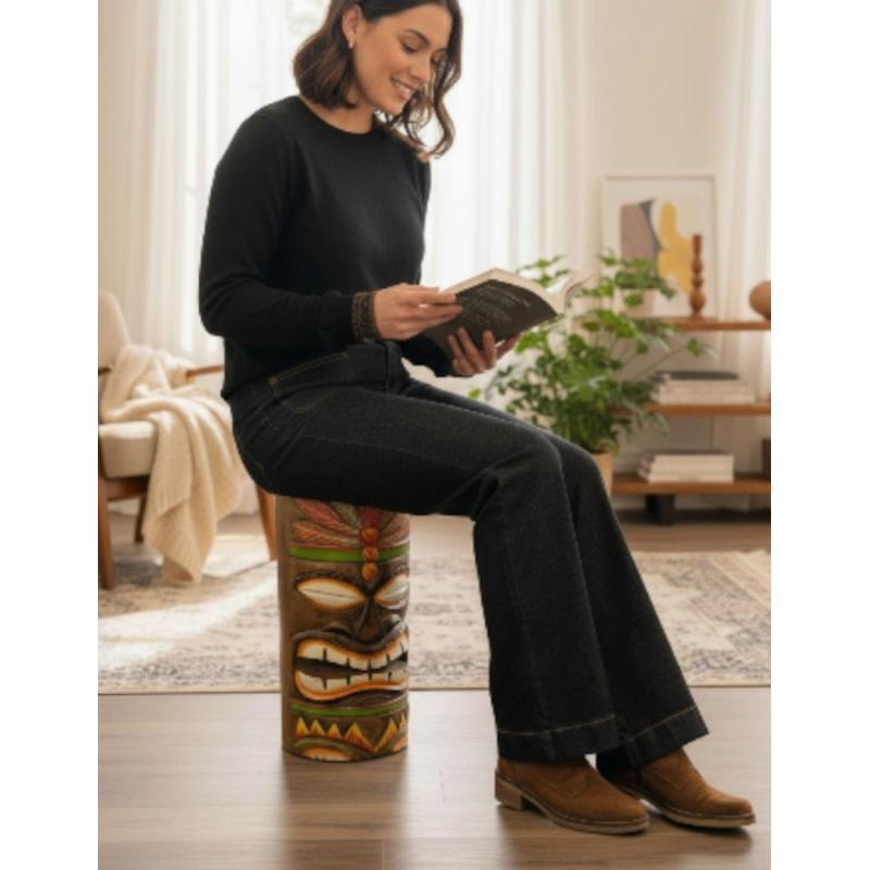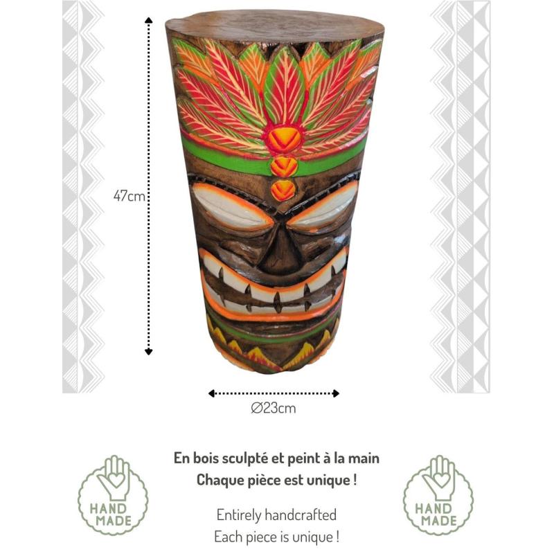 Tabouret ou Table d'appoint Tiki en bois 47x22cm | Ambiance Tiki Bar