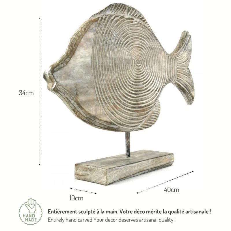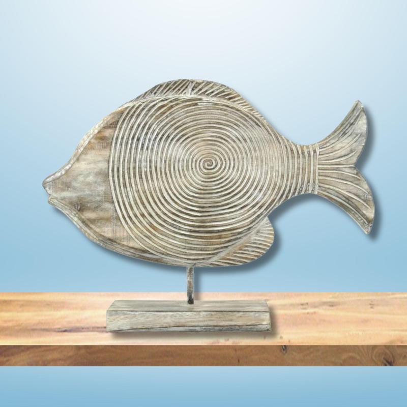 Statue Poisson en bois patiné 40cm - Décoration Marine