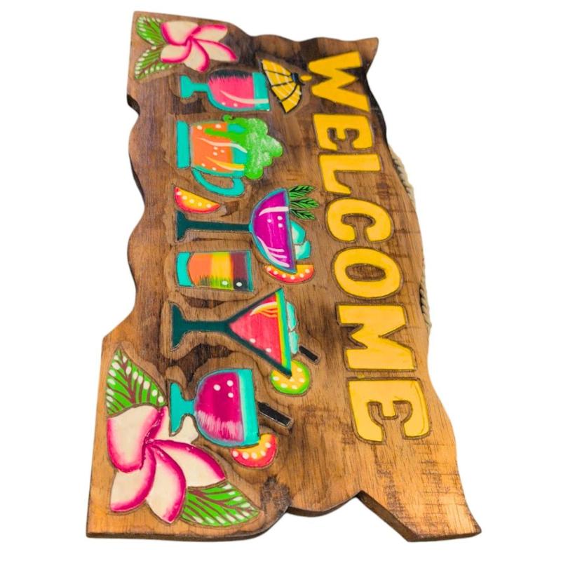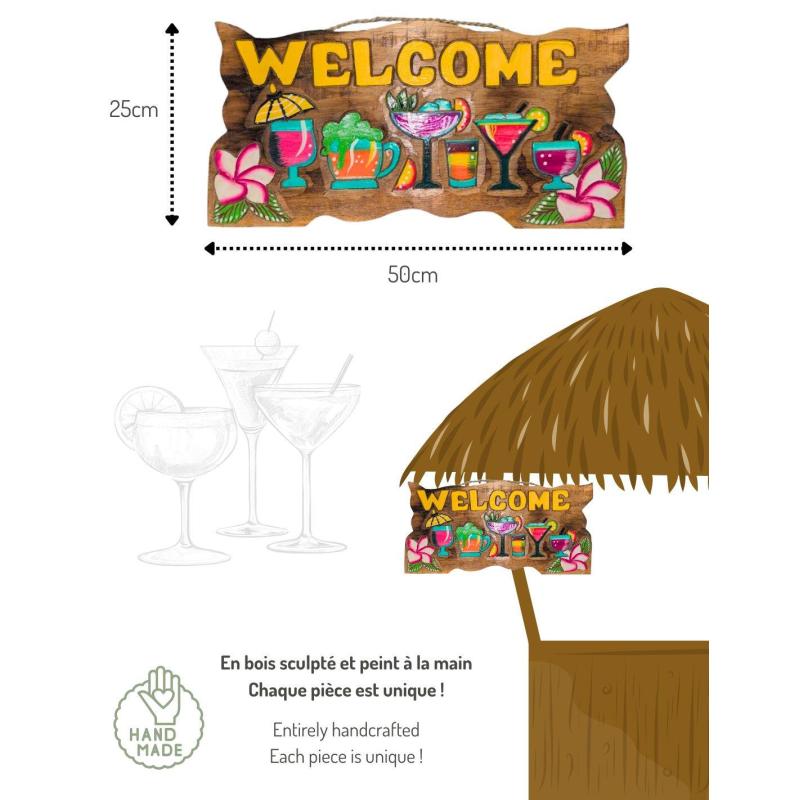 Panneau "Welcome" 50x25cm en bois | Ambiance Tropicale