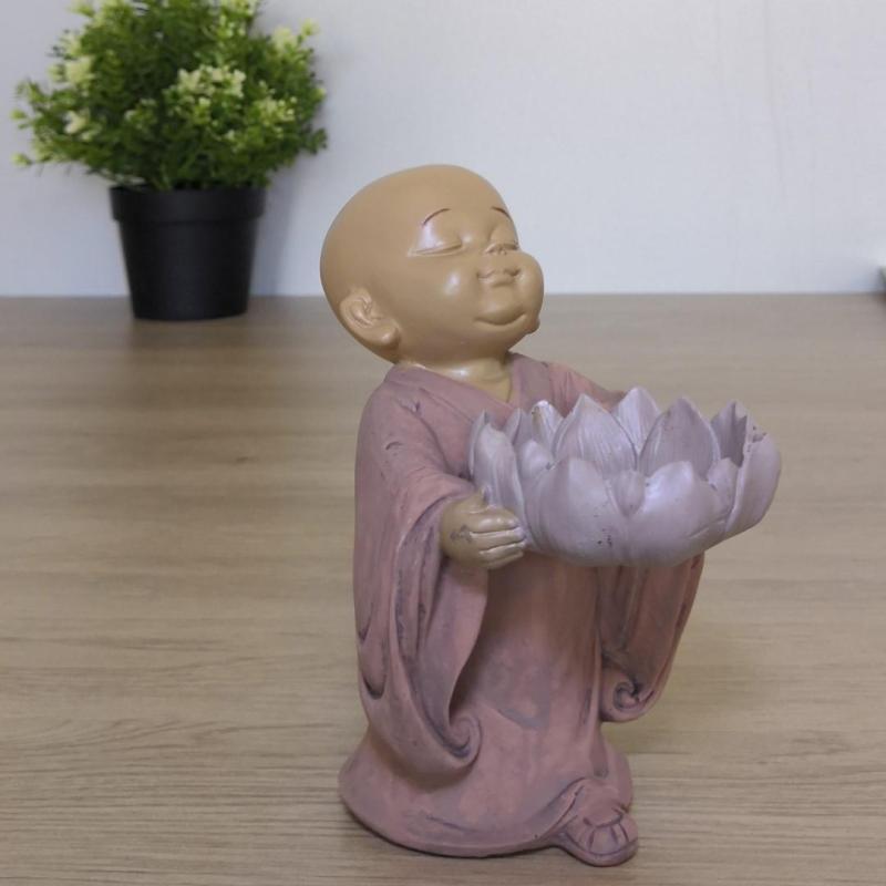 Bougeoir Bébé Bouddha tenant une fleur de lotus 13cm