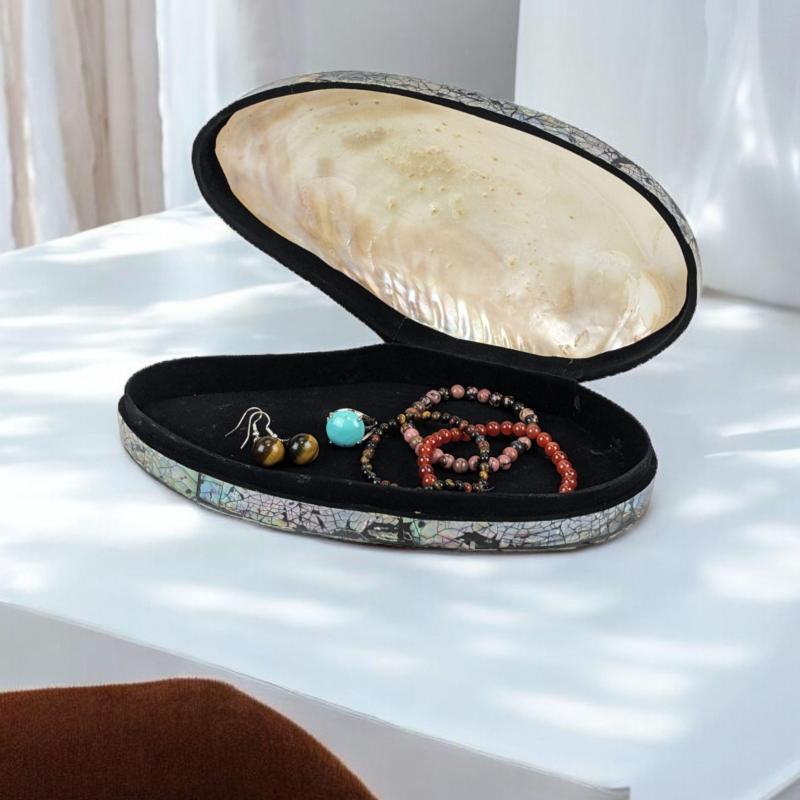 Boîte à bijoux en coquillage et marqueterie de nacre