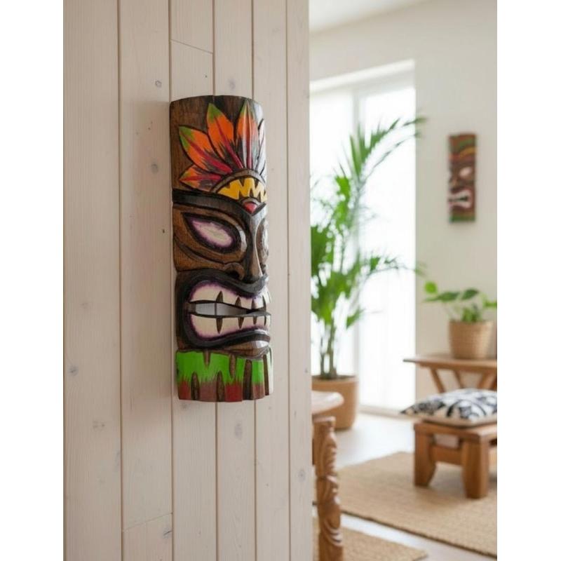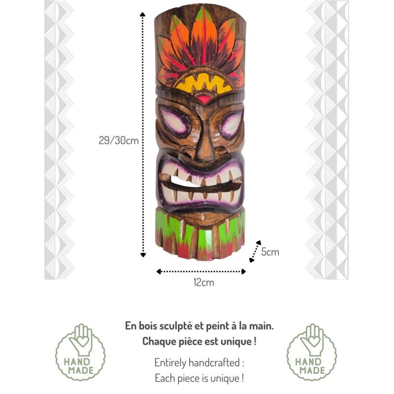 Masque Tiki Multicolore 30cm en Bois | Authentique & artisanal