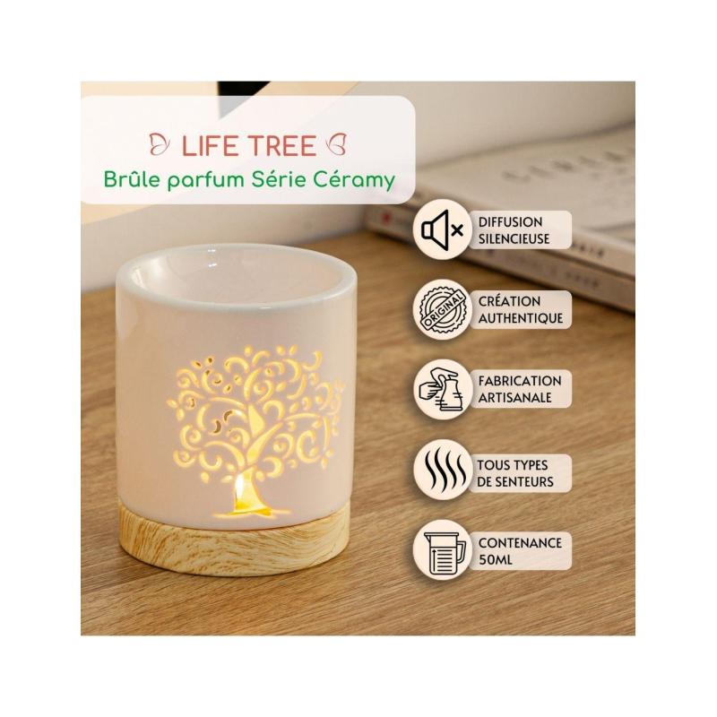 Brûle-parfum Arbre de Vie en Céramique Blanche