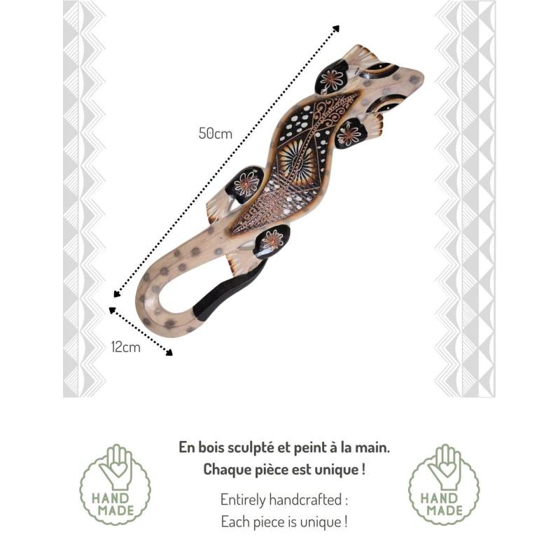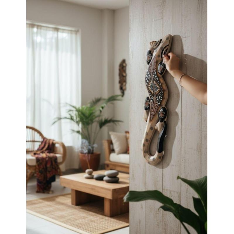 Gecko mural en bois 50cm | Artisanat de Bali
