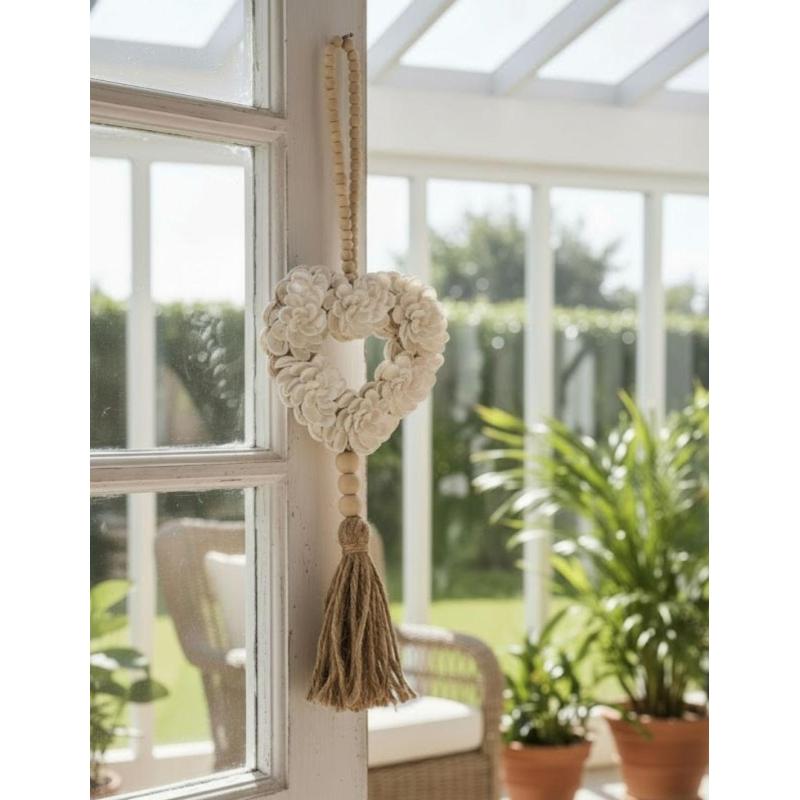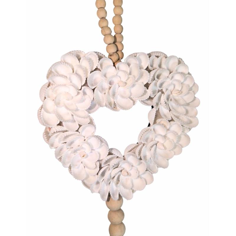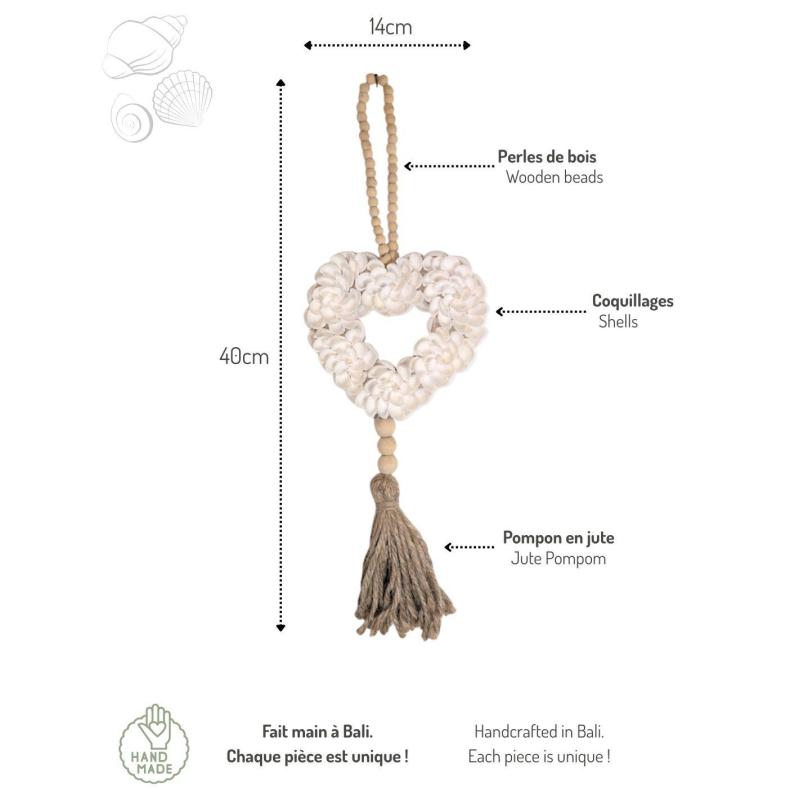 Suspension Bohème Coeur en Coquillages et Perles de Bois | Artisanat de Bali