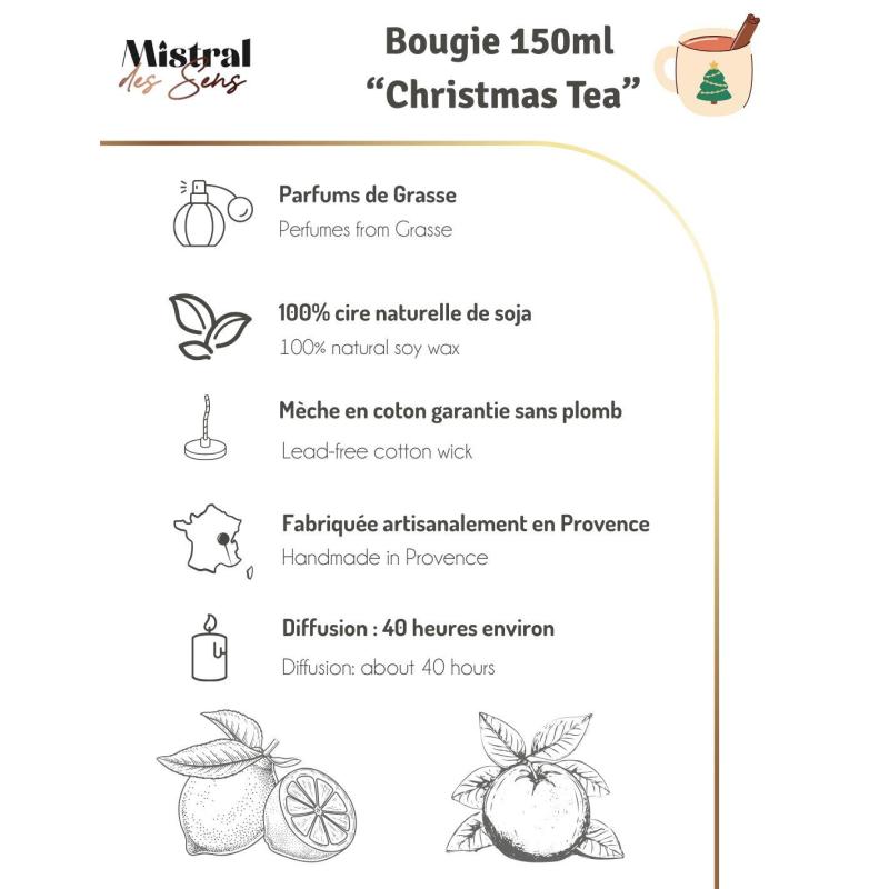 Bougie Parfumée "Christmas Tea" Édition Limitée - 40 heures 150ml | Mistral des Sens