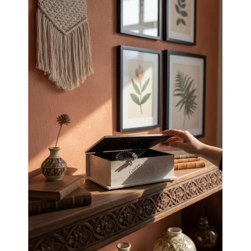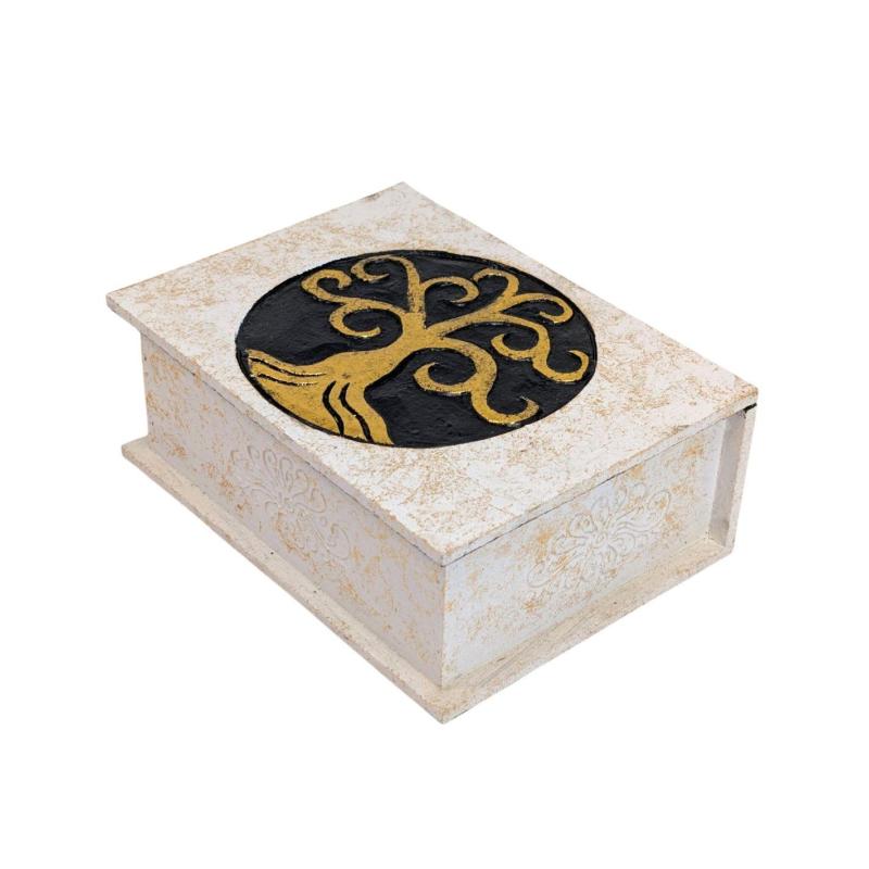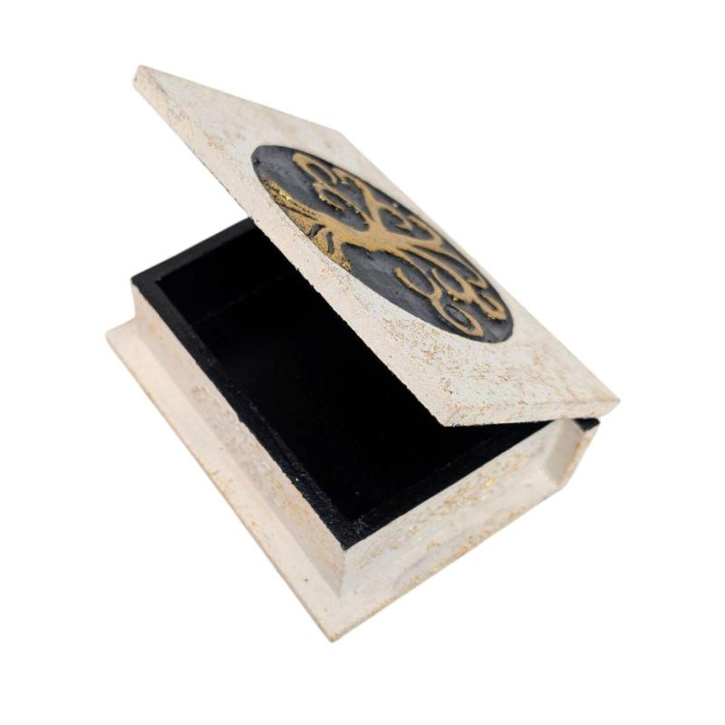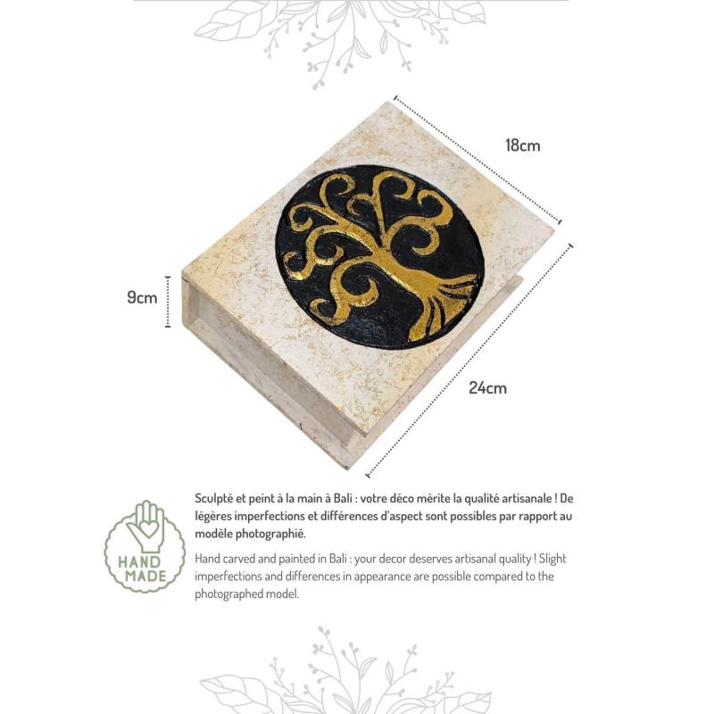 Grande boîte en bois Arbre de Vie Noir & Or | 24x18cm