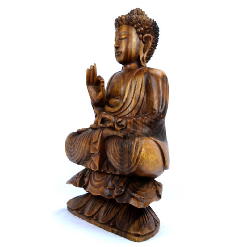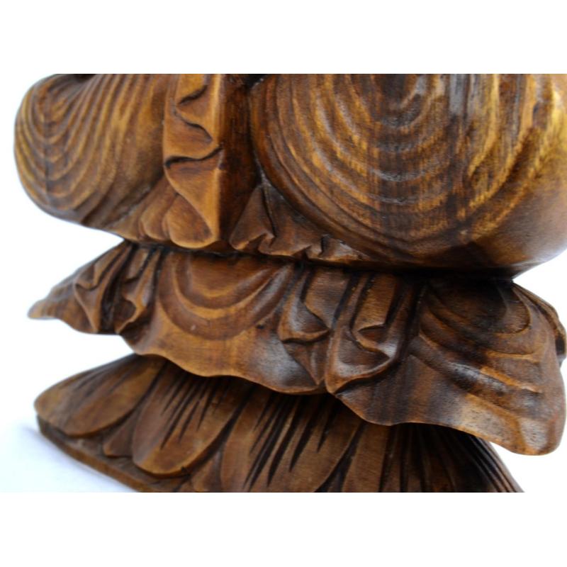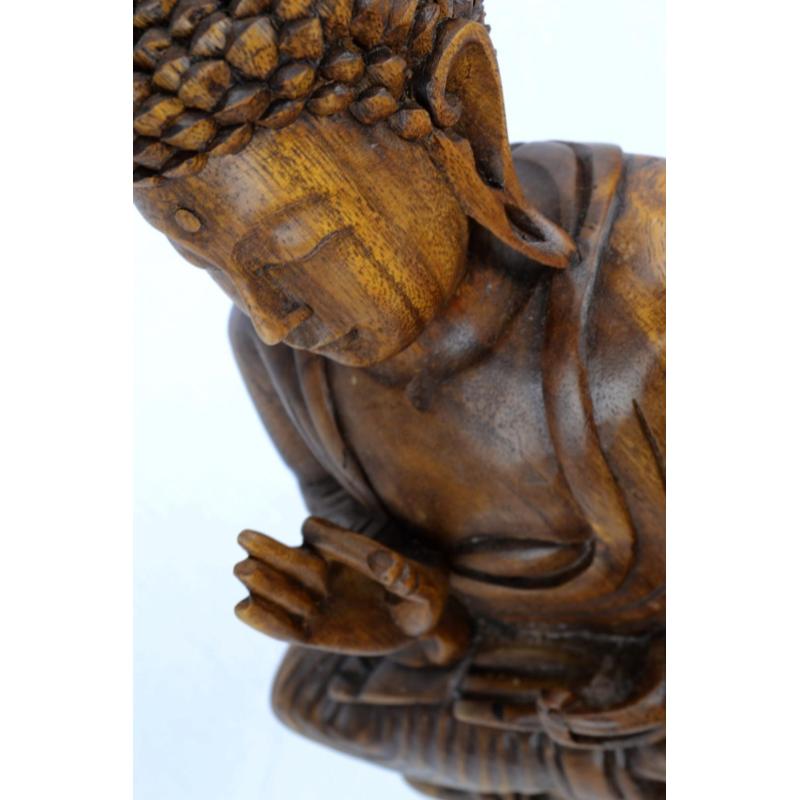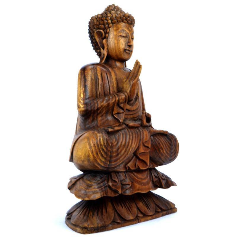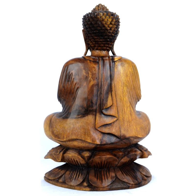 Statue de Bouddha assis sur lotus 40cm Bois sculpté main