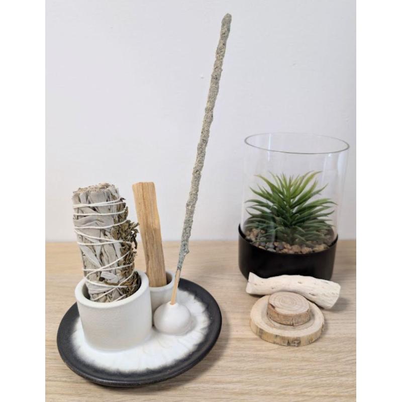 Support à Encens 3-en-1 en céramique | Palo Santo, Sauge et Bâtonnets