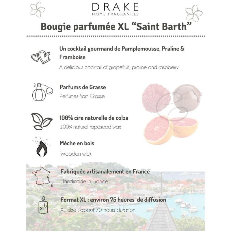 Bougie parfumée naturelle "Saint Barth" Pamplemousse, Praline & Framboise 75 heures 500g | Drake