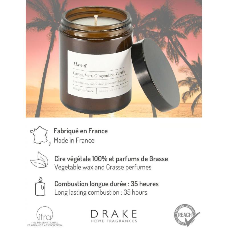 Bougie parfumée naturelle "Hawaï" Citron vert, Gingembre & Vanille 35 heures 135g | Drake