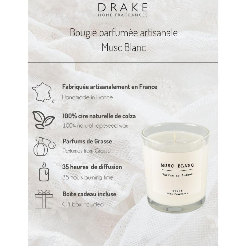 Bougie parfumée artisanale "Musc Blanc" 35 heures | Drake