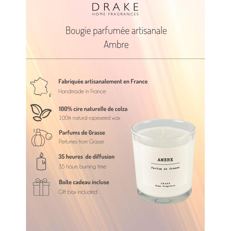 Bougie parfumée artisanale "Ambre" 35 heures | Drake