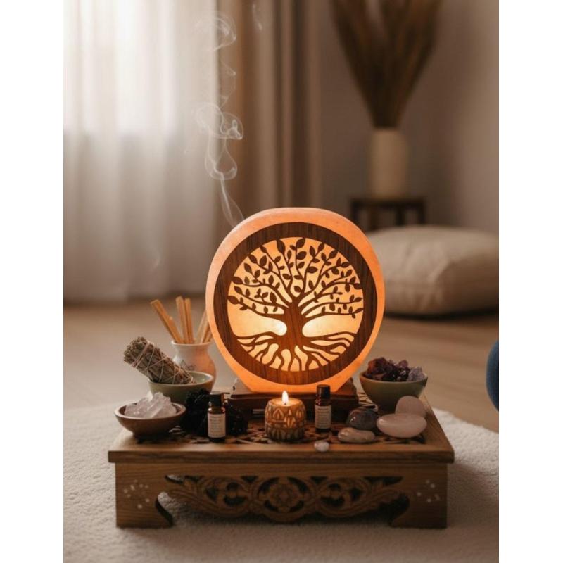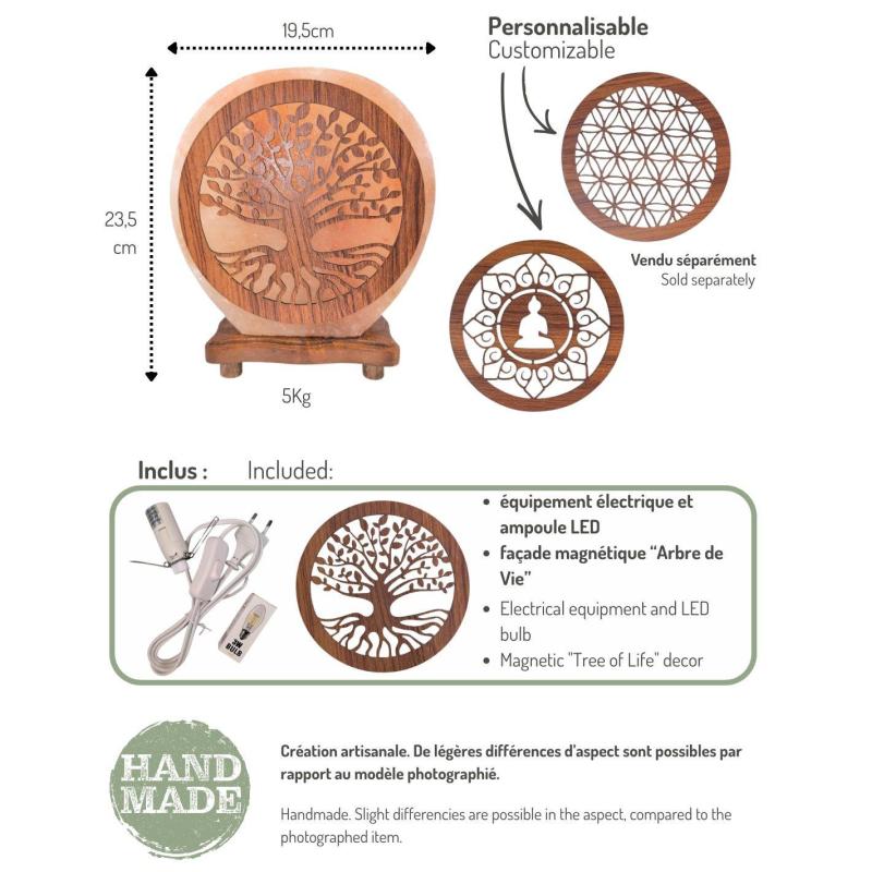 Lampe de Sel de l'Himalaya motif Arbre de Vie interchangeable 5Kg