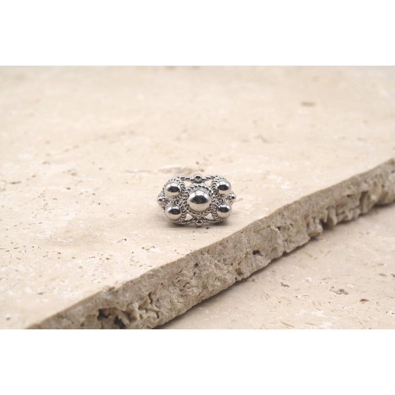 La bague Boulonnaise est composée de 9 demi-sphères de tailles différentes, 5 grandes et 4 petites représentant les 9 mois de grossesse précédent la naissance de l’enfant espéré.