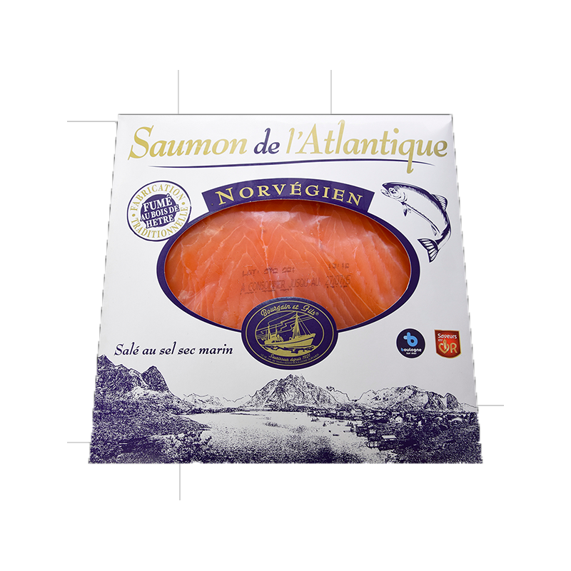 Le saumon norvégien, salé au sel sec et à la main, est fumé au bois de hêtre.