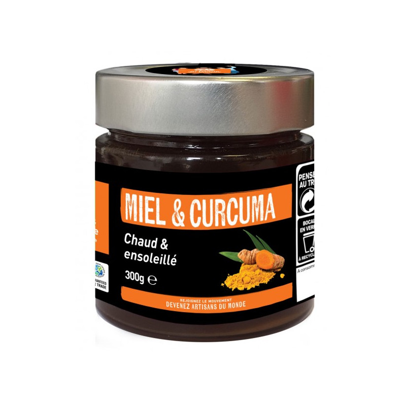 Issu du commerce équitable, notre miel au curcuma allie la douceur du miel de fleurs sauvages et les bienfaits du curcuma. Le miel provient de Coopsol et Mieles del Sur, coopératives de petits producteurs d'Argentine et du Mexique et le curcuma viet du Sri Lanka.