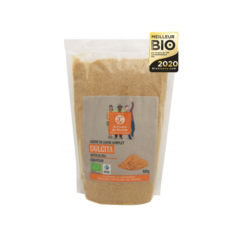 Ce sucre dulcita est issu du commerce équitable, nous travaillons en direct avec les producteurs d'Equateur. Labellisé WFTO (World Fair Trade Organisation), Solidar’Monde Importe les produits Artisans du Monde, créateur du commerce équitable en France.